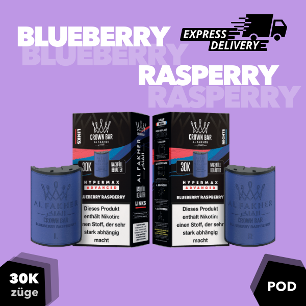 Die Al Fakher 30K Pods Blueberry Raspberry 10x10ml kombinieren süße Blaubeere mit einer leicht frischen Himbeernote. Dieser Doppelbeeren-Mix gehört zu den beliebtesten Aromen im Fruchtsegment und sorgt für konstante Verkäufe in allen Verkaufskanälen.