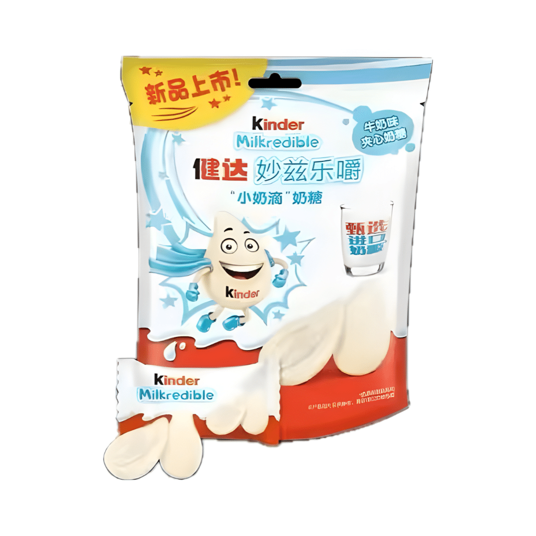 Kinder Milkredible Milk Flavor bietet den klassischen, milden Kinder-Milchgeschmack in einer exklusiven asiatischen Rezeptur. Durch die besondere Herkunft und limitierte Verfügbarkeit ist dieses Produkt ein starker Aufmerksamkeitsmagnet im Regal und sorgt für schnellen Abverkauf.