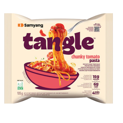 Samyang Tangle Chunky Tomato bringt eine besondere Variante koreanischer Instantnudeln: Würzige Sauce mit echtem Tomatengeschmack und leckeren Tomatenstückchen, kombiniert mit den bekannten, bissfesten Samyang-Nudeln. Perfekt für alle, die Nudeln mit mediterranem Flair lieben.