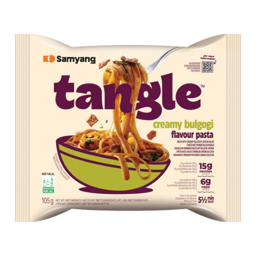 Samyang Tangle Creamy Bulgogi vereint den herzhaft-süßen Geschmack des koreanischen BBQ-Klassikers Bulgogi mit einer cremigen Sauce. In Kombination mit den beliebten Samyang-Nudeln entsteht ein intensives, vollmundiges Geschmackserlebnis, das sowohl würzig als auch angenehm mild ist.