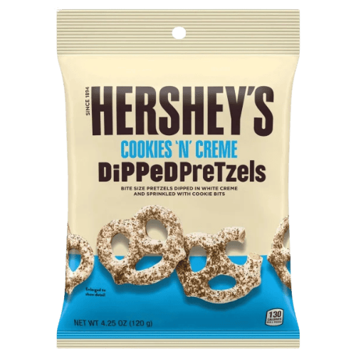 Mit den Hershey’s Cookies N Cream Dipped Pretzels genießen Sie den unwiderstehlichen Geschmack von knusprigen Brezeln, umhüllt von cremiger Cookies-n-Cream-Schokolade. Diese Kombination aus süßem Genuss und leicht salziger Knusprigkeit ist ein echter Hit für jede Naschkatze. Perfekt für Kioske, Tankstellen und als besondere Leckerei für unterwegs.