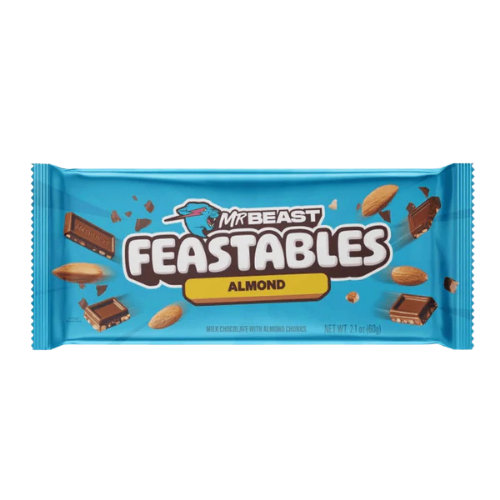 Mr Beast Feastables Almond 10x60g sind hochwertige Schokoladentafeln mit knackigen Mandelstücken der bekannten Marke Feastables von Mr Beast. Die Kombination aus cremiger Schokolade und gerösteten Mandeln sorgt für ein intensives Geschmackserlebnis und spricht besonders Kunden an, die klassische Nuss-Schokolade bevorzugen.