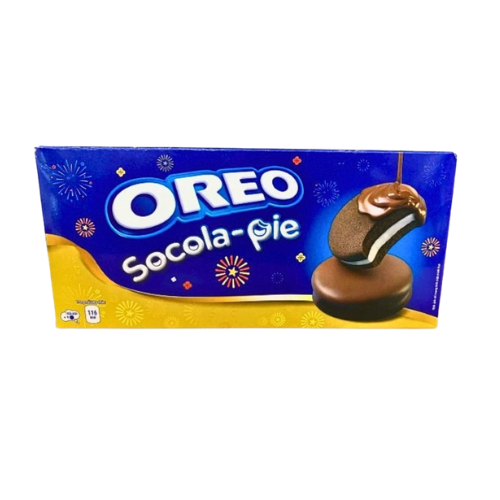 Oreo Socola Pie Vanille kombiniert den unverwechselbaren Oreo-Kakaokeks mit einer soften, kuchenähnlichen Textur und einer zarten Vanillecremefüllung. Umhüllt von feiner Schokolade, bietet dieser Snack ein intensives Geschmackserlebnis – perfekt zum Kaffee, als Dessert oder für unterwegs.