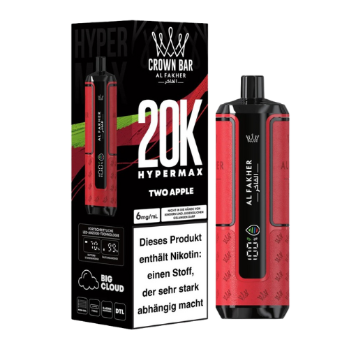 Der Al Fakher Two Apple Vape bringt dir den absoluten Klassiker aus der Shisha-Welt in praktischer Einwegform. Eine intensive Kombination aus süßem roten und frischem grünen Apfel, abgerundet durch eine feine Anis-Note – jetzt mit bis zu 20.000 Zügen pro Gerät für langanhaltenden Genuss.