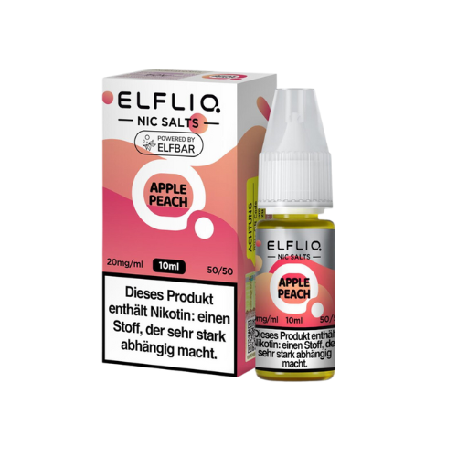 ELFBAR ELFLIQ Apple Peach vereint die frische Säure grüner Äpfel mit der süßen Sanftheit von reifem Pfirsich – eine ausgewogene, fruchtige Kombination für dein tägliches Dampferlebnis. Die Nikotinsalz-Formel sorgt für ein sanftes Zuggefühl ohne Kratzen und ist perfekt für Pod-Systeme geeignet.