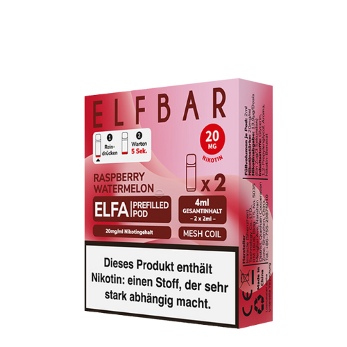 Elfbar Pods Raspberry Watermelon – 10x 2x2ml – Fruchtiger Genuss mit Himbeere und Wassermelone! 🍇🍉💨