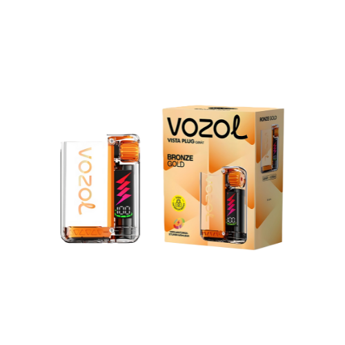 Vozol Vista Geräte in der Farbe Bronze Gold vereinen einen eleganten Metallic-Ton mit starker Performance und einfacher Handhabung. Die wiederaufladbaren Pod-Systeme sind kompakt, leicht und zuverlässig – perfekt für den täglichen Gebrauch und für alle, die Wert auf Stil und Qualität legen.